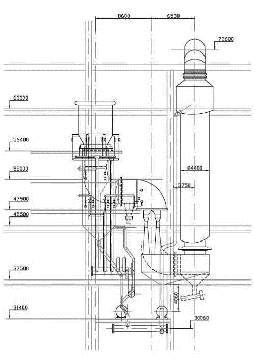 Радиационный охладитель конвертерных газов (ОКГ-400), предназначенный для охлаждения газов до величины, обеспечивающей безаварийную работу газоочистного оборудования и использования воспринимаемого тепла для выработки пара, представляет собой газоплотную конструкцию, состоящую из следующих элементов: