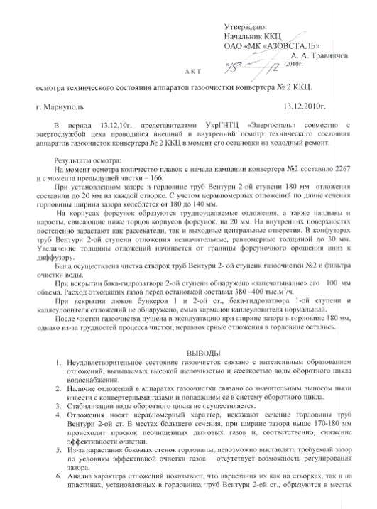 Конвертерный цех ОАО «МК «АЗОВСТАЛЬ» с конвертерами емкостью 400 т был введен в эксплуатацию в 1977 г.