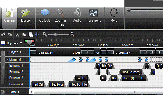 Рис. 2.8. Монтаж видеоурока в программе Camtasia Studio