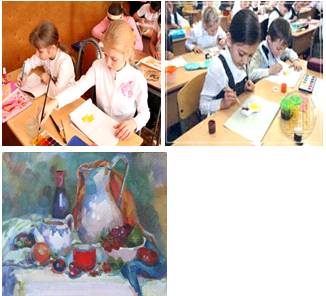 В интерактивном режиме информационные потоки идут на ученика или группу, вызывают у них активную деятельность, замкнутую внутри них. Ученики выступают здесь как субъекты учения себя, учащие себя. Интерактивный режим формирует активную модель взаимодействия, он характерен для технологий самостоятельной деятельности, самообучения, самовоспитания, саморазвития. Организация интерактивного обучения предполагает моделирование жизненных ситуаций, использование ролевых игр, общее решение вопросов на основании анализа обстоятельств и ситуации, проникновение информационных потоков в сознание, вызывающих его активную деятельность. Внедрение интерактивных технологий является одним из факторов интенсификации процесса обучения, поскольку интерактивное обучение позволяет успешно достигать цели активизации учебно-познавательной деятельности, обеспечение осмысления и глубокого понимания учебного материала, индивидуализация педагогического взаимодействия, обеспечения постоянной двусторонней связи в учебном процессе [Бордовская]. Такое обучение соответствует современным требованиям к учебному процессу. При работе в парах "ученик - ученик" возможно совместное рисование одной работы, где дети учатся распределять роли, становятся соавторами, учитывают пожелания друг друга, составляют различные варианты, выбирают лучший (например, в компоновке и включении в рисунок отдельных деталей), а в конце урока защищают свой рисунок перед классом.[14] <#"789106.files/image001.jpg">