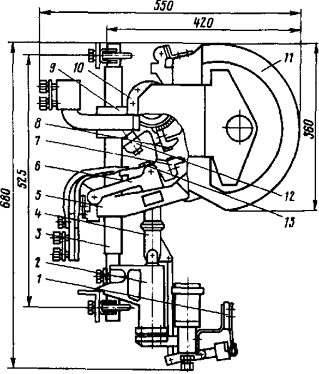 главного контакта 12 и дугогасительного контакта 8. На кронштейне