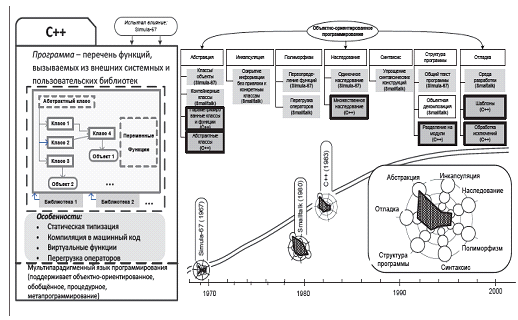 Рис. 5. Фрейм языка С++ и положение языка С++ на