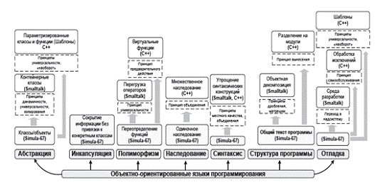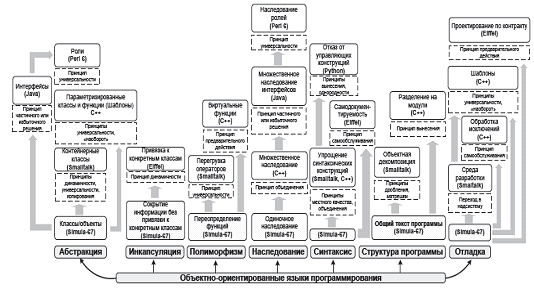 объектно-ориентированных возможностей в различных языках программирования.