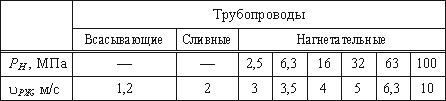 трубопроводах зависит в основном от давления в гидросистеме (таблица 3.2).