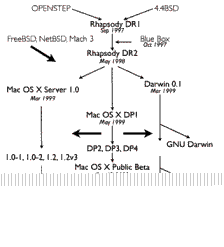 было в версиях DP: ядро Darwin со своим кернелом xnu, графическая система