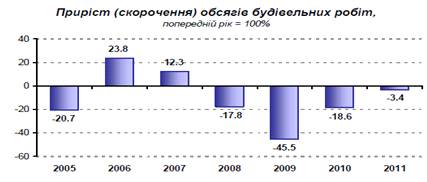 будівництві призвів до того, що у середньому щомісяця обсяги будівництва у 2011