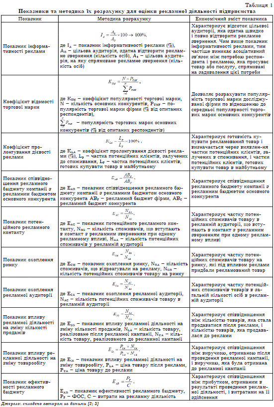 ефективності рекламної діяльності підприємства