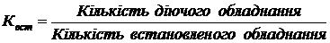 Для характеристики рівня залучення обладнання у виробництво розраховують наступні показники: