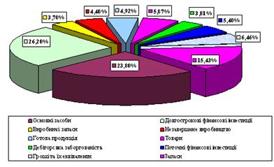 виробничі запаси - 0,29%, незавершене виробництво - 0,19%, товари - 0,48%,