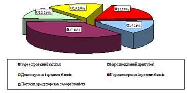Вертикальний аналіз структури пасивів балансу показує що перший розділ "Власний капітал" в початковому і кінцевому звітному періоді залишає 50% від підсумку балансу - 100%. Є зміни в статтях: зареєстрований капітал збільшився а нерозподілений прибуток (непокритий збиток) зменшився на 6,18%.
