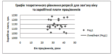 Цей недолік враховує метод регресії та кореляції, тому визначимо зв’язок між віком водіїв та їх продуктивністю праці за допомогою цього методу.