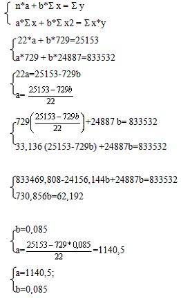 де а - параметр, що показує значення результативної ознаки (У), якщо факторна ознака х = 0;- параметр, що показує на скільки одиниці змінюється в середньому результативна ознака (У), якщо факторну ознаку змінити на одиницю.