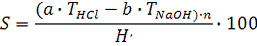 где, S - сумма поглощенных оснований, мг∙экв/100г; a - количество соляной кислоты, взятое для вытеснения оснований, содержащихся в 10 г почвы, мл; b - количество щелочи, пошедшей на титрование, мл; n - концентрация - 0,1 моль/л; Т - поправка к титру = 1; н, - навеска почвы в граммах соответствующая объему фильтрата взятого для титрования.