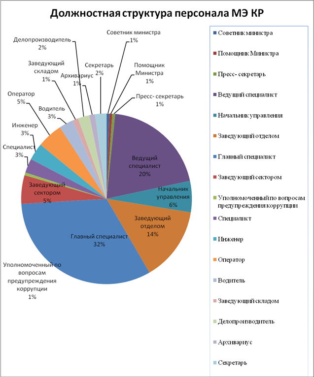 На основе данных таблицы 2 рассчитана должностная структура персонала министерства, которая приведена на рисунке 2.