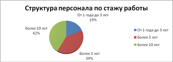 Из таблицы 4 видно, что в Министерстве экономики КР в основном работают высоко квалифицированные специалисты с довольно большим стажем работы, у 42 % из них он составляет более десяти лет.