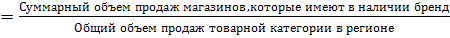 есть процента магазинов, в которых представлен бренд, рассчитывают также