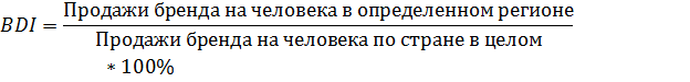 В свою очередь индекс развития бренда (BDI - Brand Development Index) рассчитывается по формуле: