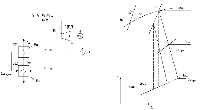При Р0=var начальная энтальпия даже возрастает, температурное состояние регулирующей ступени, всей проточной части и температура пара на выходе из ЦВД остается более высокой так как отсутствует процесс дросселирования.