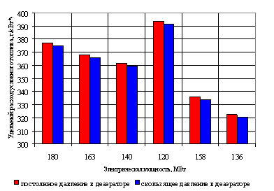 нагрузках при работе на постоянном давлении в деаэраторе