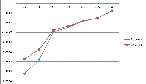Как видно из рис.3 ставки дисконта, при которой проекты А и Б