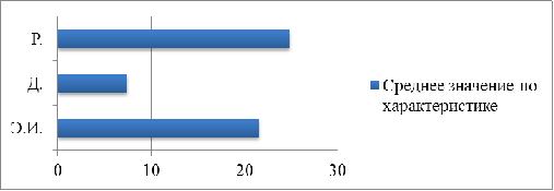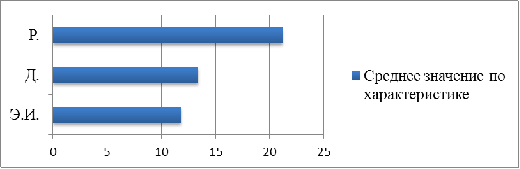 итоговое значение Р. составляет 21, 2 балла, Д. равняется 13, 4 баллам, Э.И.