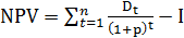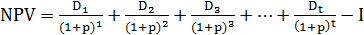 где Dt - чистые денежные потоки за период I;- первоначальные инвестиционные затраты;