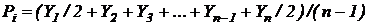 Y1, Y2, Yi, Yn - расчетные величины, определяемые по формулам
