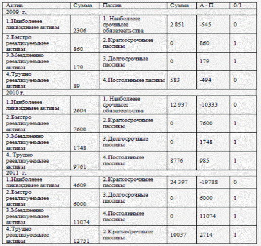 «РИК» за 2009-2011 гг. показал, что баланс является не достаточно ликвидным и