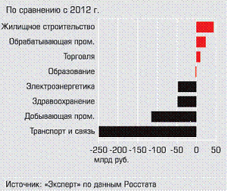 Рисунок 2.2 - Инвестиции в инфраструктуру в 2013 году по сравнению с 2012