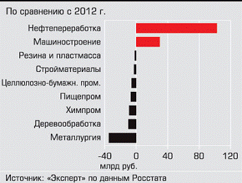 Рисунок 2.3 - Инвестиции в нефтепереработку и машиностроение в 2013 году по сравнению с 2012 годом