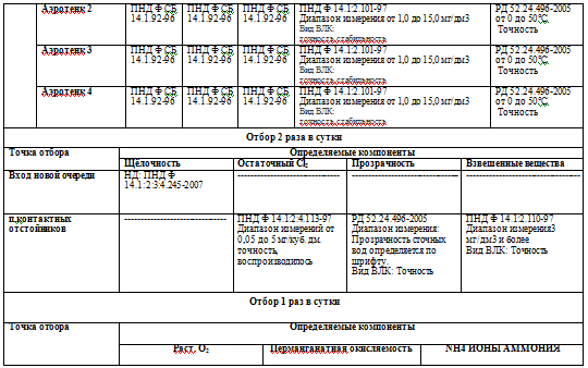 процесса очистных сооружений в таблице 1. Технологическая схема очистных
