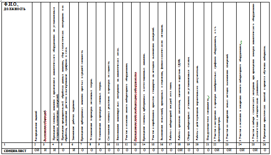 Матрица ответственности в лаборатории очистных