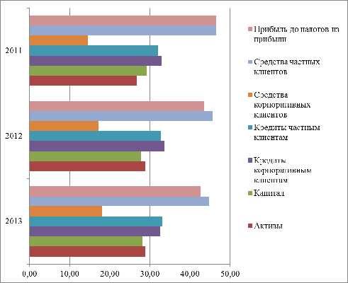 показателей, характеризующих деятельность Банка за 2011-2013 гг., можно сделать