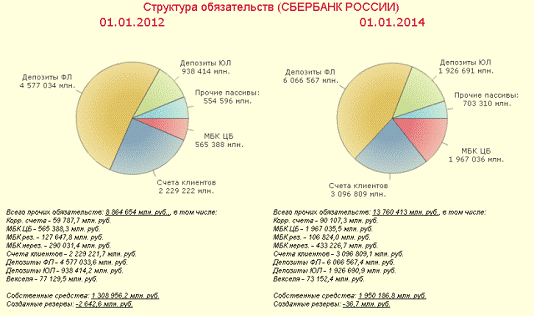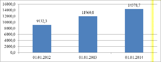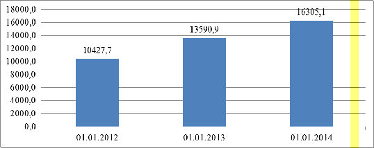 России» по состоянию на 01.01.2014 г. составила 16 305 млрд. руб., превысив