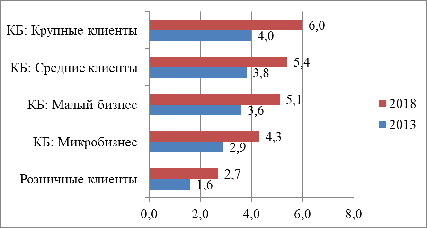 сегментах финансового рынка представлена в таблице 2 и на рис. 2.