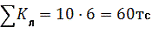 суммарное расчетное нажатие тормозных колодок локомотива, кгс.