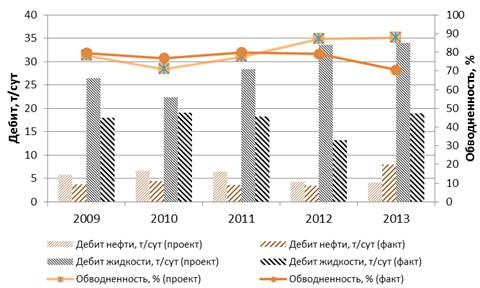 нефти. Причиной этому служат меньший дебит скважин по сравнению с проектным,