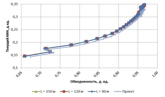 обводненности меняется мало при значениях длины горизонтального ствола от 90 до