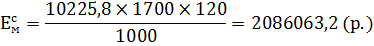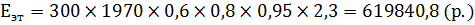 Кс - коэффициент спроса, указывающий степень использования мощности, принять равным 0,6; Кз - коэффициент загрузки оборудования, 0,8; Кп - коэффициент, учитывающий потери в сетях, 0,95; Цэ - цена киловатт-часа электроэнергии, 2,3 руб./кВт·ч.