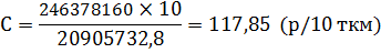 Себестоимость перевозок в рублях на 10 ткм определяется делением общей