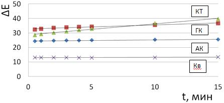 КТ-катехол, t-время экспозиции, мин.