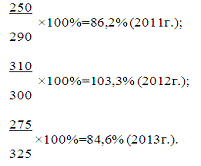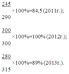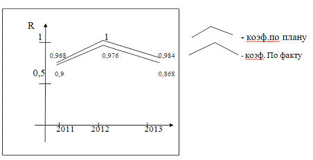 По приведенным расчетам можно построить график изменений ритмичности работы организации за 3года.