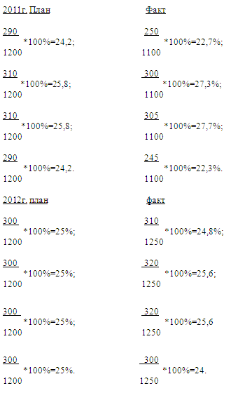 составить таблицу структуры объемов работ по кварталам и рассчитать отклонение