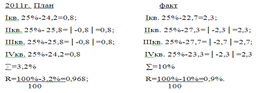 объемов работ от среднеквартального объема (по модулю), затем про суммировать