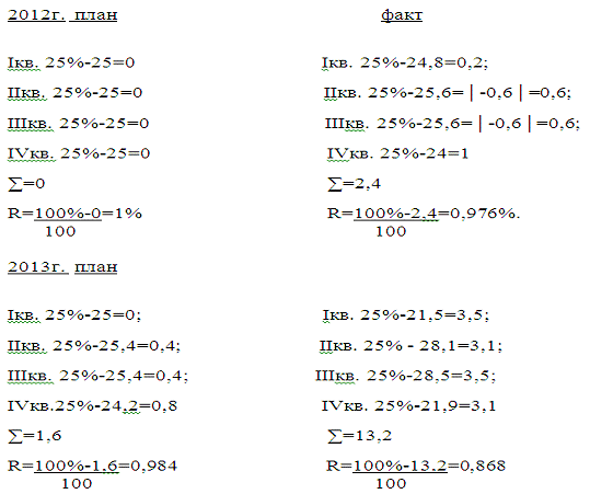 Ритмичность работы организации оценивается коэффициентом равномерности.