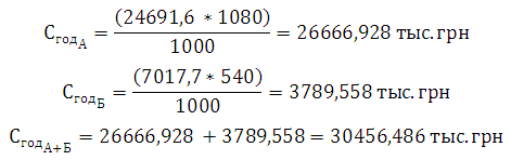 где QА и QБ - годовой объем производства соответственно изделий А и Б; шт., ЦА и ЦБ - оптовая цена предприятия соответственно изделия А и Б.т=(1080*29629,92+540*8421,2)/1000=36547,761 тыс. грн.