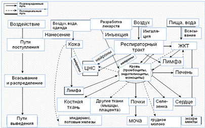 и другие пути воздействия, такие как кожа, желудочно-кишечный тракт (рисунок