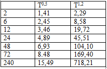 t = 2, 6, 12, 24, 48, 72, 240ч