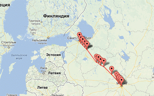 строим схему трассы Санкт-Петербург-Москва (700км).
