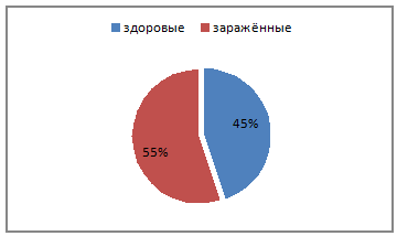 % заражённых особей |